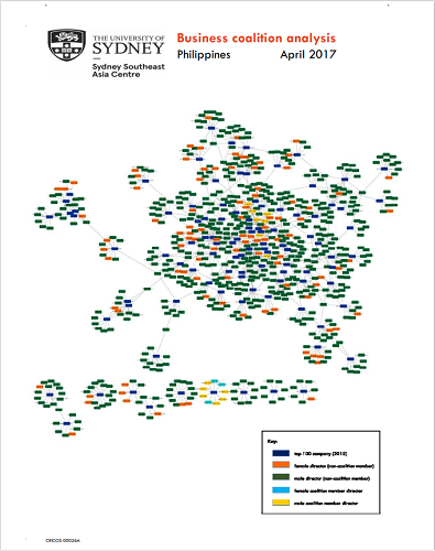 The factsheet explores the challenges and opportunities within the coalition, particularly focusing on member companies like Ayala Corporation and SSI Group, which are pivotal due to their significant market presence and potential influence within the largest corporate governance clusters. It discusses how the interconnected nature of corporate boards in the Philippines could either facilitate or limit the coalition’s efforts to foster gender equality initiatives, emphasising the strategic role of independent directors and industry groups in expanding the coalition’s influence.